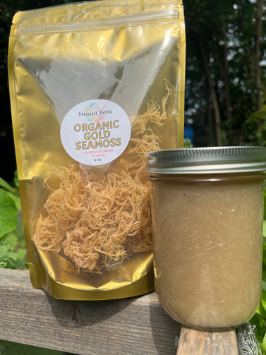 16oz jar of organic golden sea moss gel sourced from St. Lucia. Sea moss has the potential health benefits to boost the immune system, improve gut health, and it is also rich in minerals such as calcium, iodine, magnesium, and potassium.